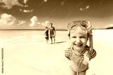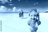 Father with kids at beach