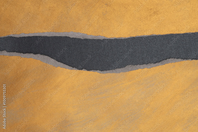 Torn, ripped paper pieces wave line frame. Gold, black copy space texture background