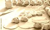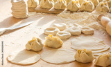 Preparation of Manti - Uzbek dumplings. Central Asian traditional food.