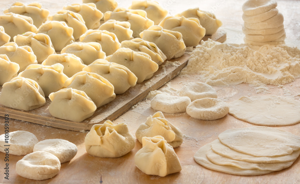 Manti - Uzbek dumplings. Central Asian traditional food.