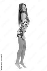 Full Length Portrait of a Sexy Blonde Woman in Little Fashion Dress