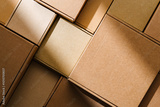 Stacked cardboard boxes arranged in a neat pattern under natural light