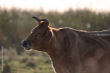 Authentic Cypriot cattle breed enjoying golden hour in a meadow
