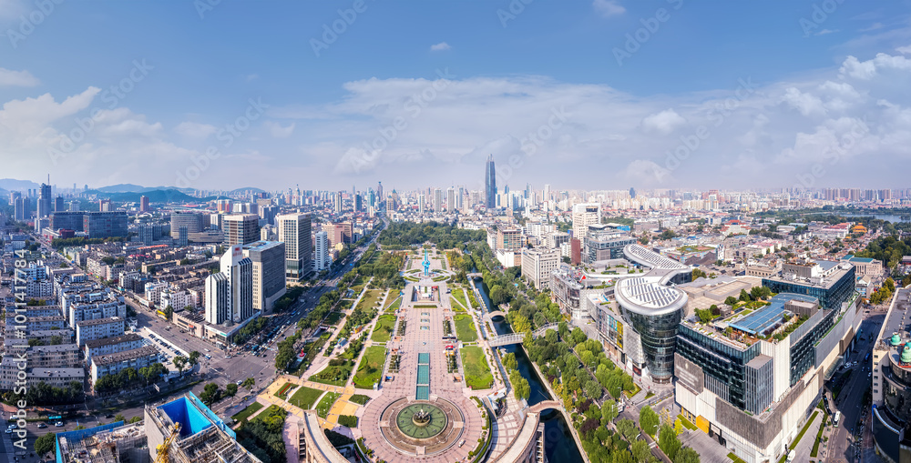 A Panoramic View of a Modern Urban Cityscape with Lush Greenery