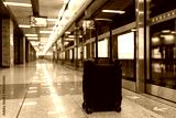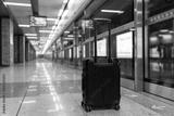 Modern Travel: A Solo Black Suitcase in a Busy Subway Station