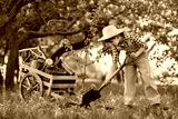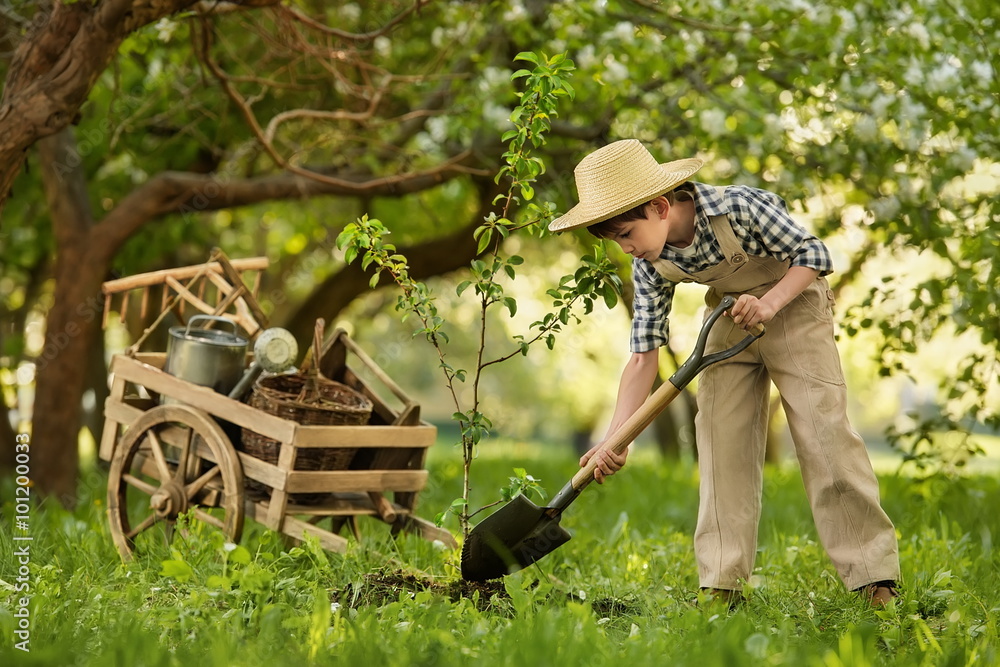 Child plant a tree in the garden