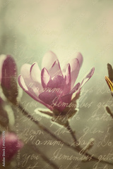 Flowering pink magnolia in vintage style
