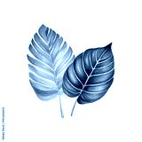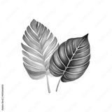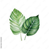 Two green leaves with a white background. The leaves are large and have a lot of detail. The leaves are painted with watercolors and have a natural. Generative AI
