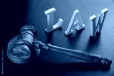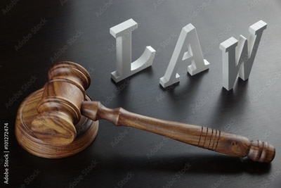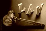 White Sign Law And Judges Gavel On Black Background