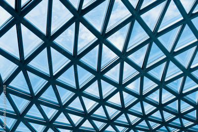 glass roof with blue sky architecture structure background