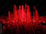 A beautiful fountain with red illumination