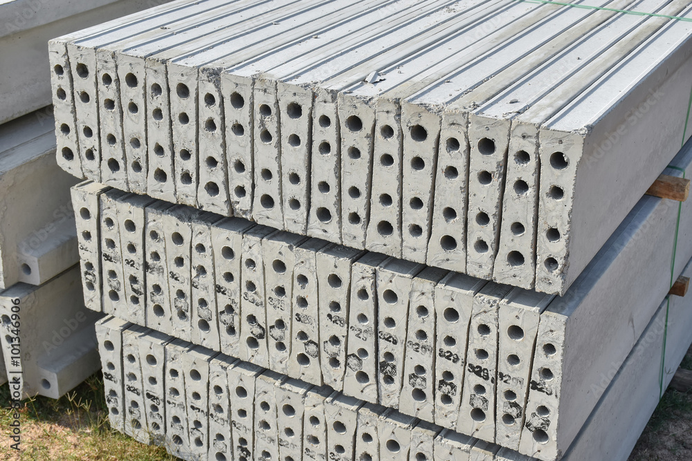 Stock of plank concrete precast at construction site