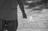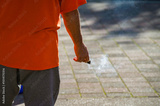 A man in an orange shirt holds a piece of burning sage at a Truth and Reconciliation event. Sage is used in First Nations culture to smudge, or cleanse and purify a person or place.