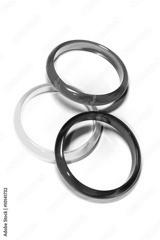 Three varicoloured rings on white background, abstractions
