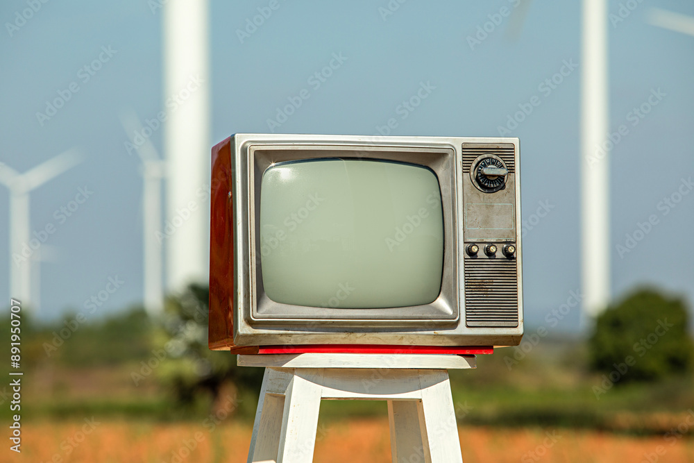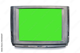 Analog old television with green screen isolated on white background. Retro TV style with clipping path, front view