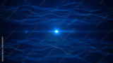 Abstract image of a digital waveform with a bright blue light burst at the center, representing data flow and technology. 3D rendering.