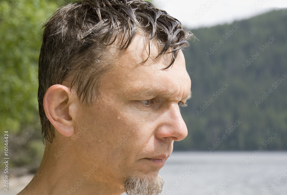 Wet mature man portrait , Canada