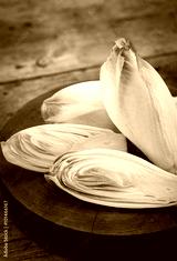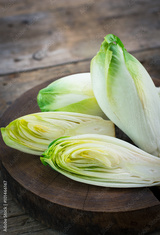Fresh witloof on the wooden table