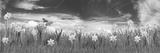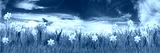 colorful natural spring meadow with daffodils on blue sky