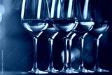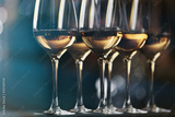 Glasses with white wine on blurred background
