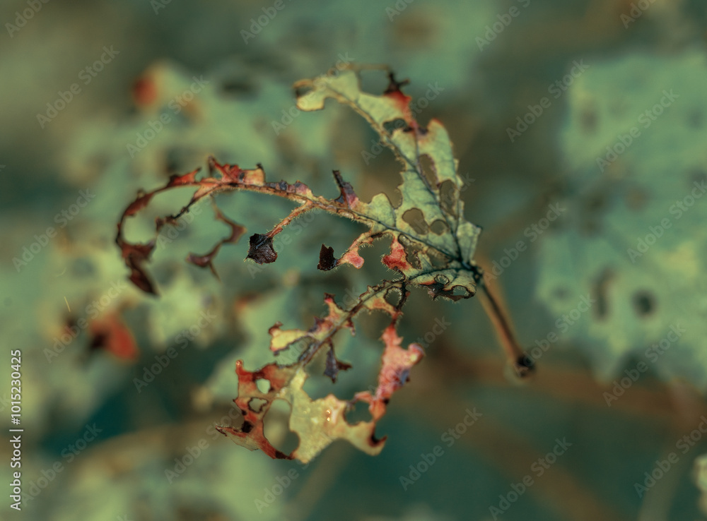 The death of the harvest.A leaf of a tree eaten by beetles.Anthracnose of grapes. Garden pests.