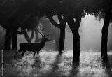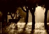 a deer at sunset in the forest