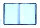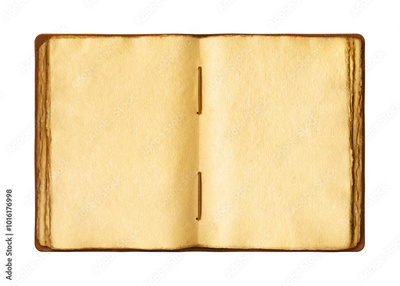 Old open medieval book with worn parchment pages. Isolated on transparent background