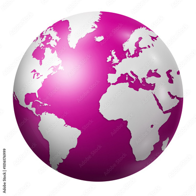 Pink earth globe isolated on transparent background
