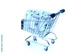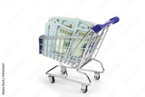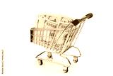 Shopping Cart With Dollar Cash Isolated On White Background, Clo