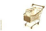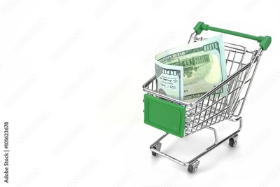 Shopping Cart With Dollar Cash Isolated On White Background, Clo