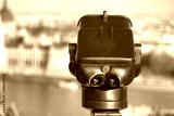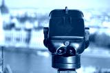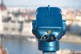 Blue coin operated binoculars overlooking the hungarian parliament building in Budapest, Hungary