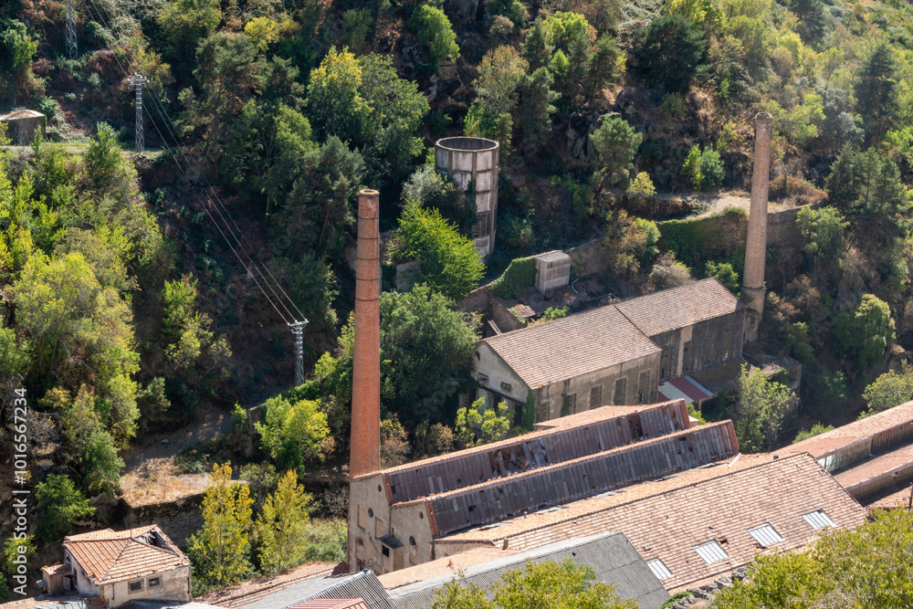 Remains of an abandoned textile factory in the vicinity of Bejar, Salamanca, Spain, located in the middle of nature.