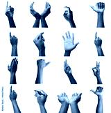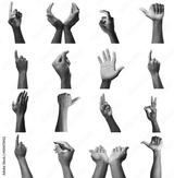 Set of male hands gestures, isolated on white
