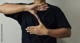 Close up Asian man shows hand gestures it means human emotion and expression using sign language