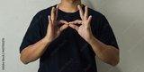 Close up Asian man shows hand gestures it means human emotion and expression using sign language