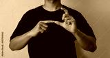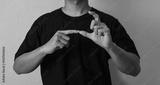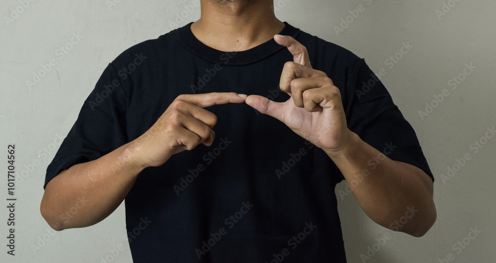 Close up Asian man shows hand gestures it means human emotion and expression using sign language