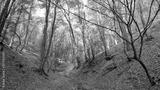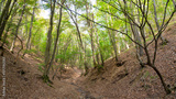 A small road between two hills in a beautiful forest