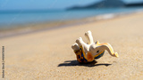 figurine of an elephant sunbathing on the beach. vacation and travel concept