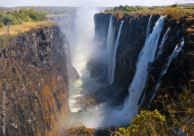 View of Victoria Falls from the ground. Mosi-oa-Tunya National park. and World Heritage Site. Zambiya. Zimbabwe. An excellent illustration.