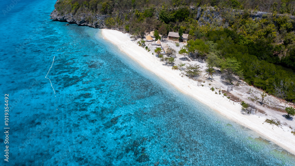 Aerial view of Sumilon Island, Oslob, Cebu, Philippines, White sand beach and seashore at Sumilon island beach, Sand beach clear sea water of the Sumilon Island, Oslob, Cebu, Philippines.