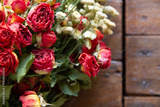 Bouquet of dried flowers on a rustic wooden board