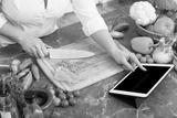 Woman using tablet for cooking