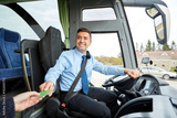 bus driver taking ticket or card from passenger