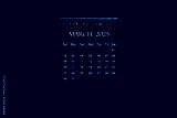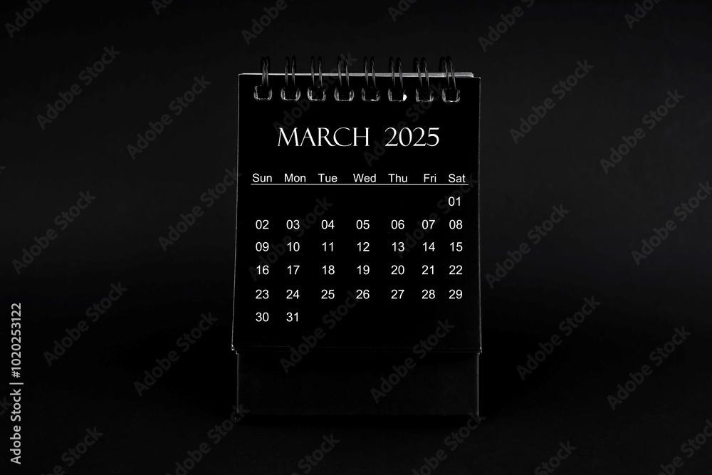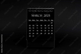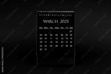 Black Calendar for March 2025. Desktop calendar on a black background.