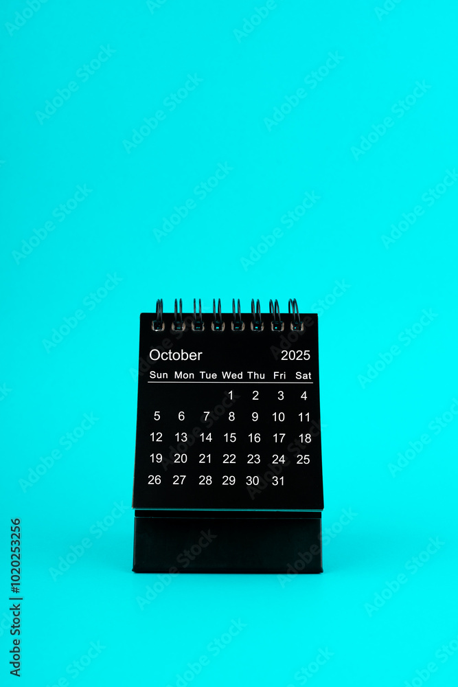 Black Calendar for January 2025. Desktop calendar on a green background.