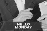 hello monday day quotes - Business man background-retro filter