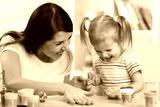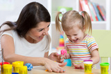 child with mom make by hands playing with color dough