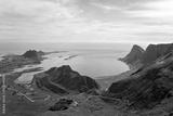 Family with kids and dog, hiking in Vaeroya island, the most famous hike Haen, children enjoying hiking on a sunny day