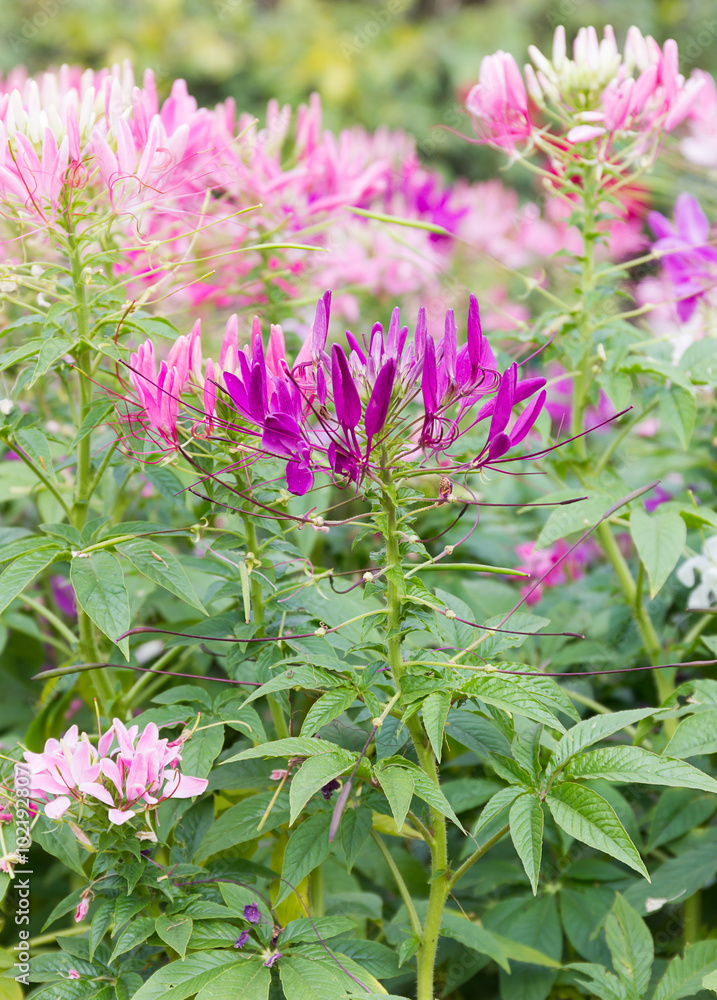 Pink spider flower in the garden