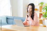 自宅でノートパソコンを操作する女性